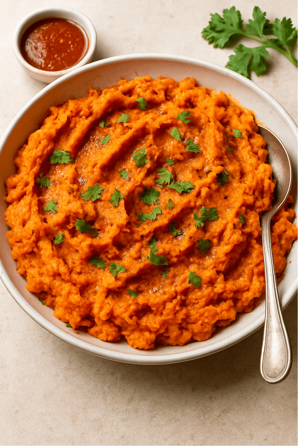 Pour the chipotle mixture over the cooked sweet potatoes. Use a masher or the back of a spoon to smash them to your preferred texture — a little chunky or smooth and creamy. Stir well to coat every bite with the spicy butter sauce.